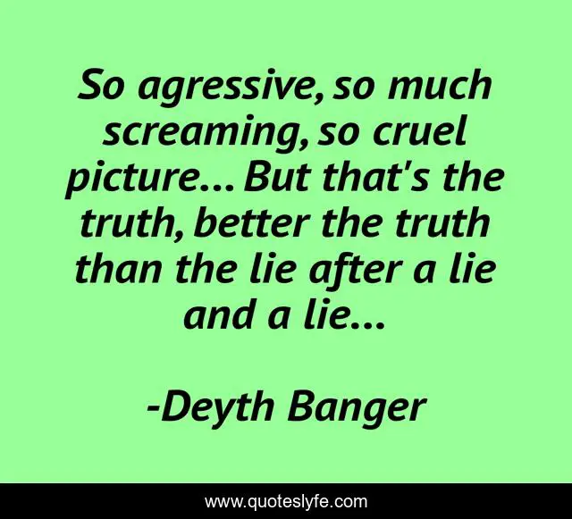 "Deyth Banger Quotes." Quoteslyfe.com, 2025. Sat. 06 Dec. 2025. <https://www.quoteslyfe.com/quote/So-agressive-so-much-screaming-so-cruel-238697>.