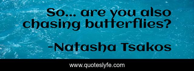 "Natasha Tsakos Quotes." Quoteslyfe.com, 2025. Fri. 05 Dec. 2025. <https://www.quoteslyfe.com/quote/So-are-you-also-chasing-butterflies-47393>.
