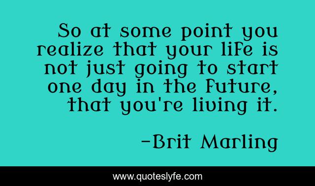 This page presents the quote "So at some point you realize that your life is not just going to start one day in the future, that you're living it.". Author of this quote is Brit Marling. This quote is about start, life, day,.