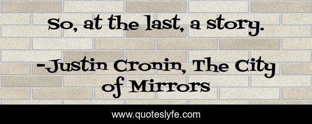 This page presents the quote "So, at the last, a story.". Author of this quote is Justin Cronin, The City of Mirrors. .