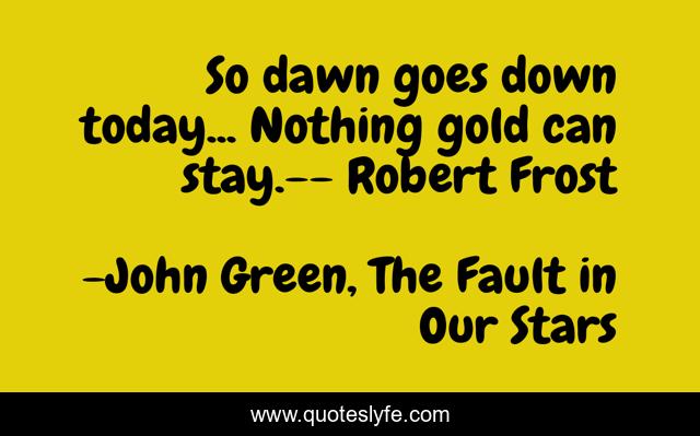 "John Green, The Fault in Our Stars Quotes." Quoteslyfe.com, 2025. Fri. 05 Dec. 2025. <https://www.quoteslyfe.com/quote/So-dawn-goes-down-today-Nothing-gold-24309>.