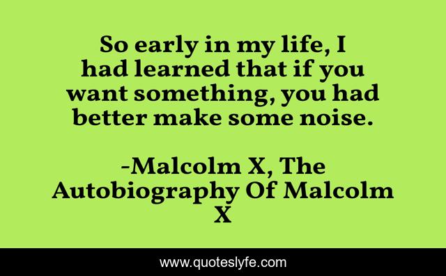 This page presents the quote "So early in my life, I had learned that if you want something, you had better make some noise.". Author of this quote is Malcolm X, The Autobiography Of Malcolm X. This quote is about action, enthusiasm, impetus, accomplishment, inspirational,.