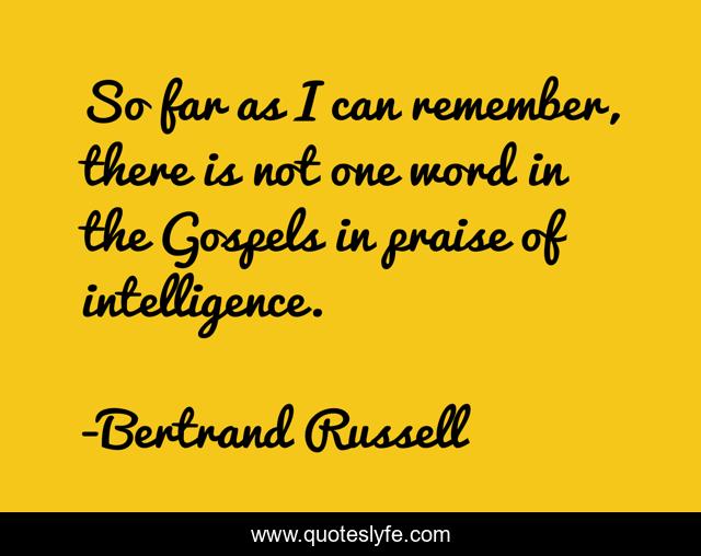 This page presents the quote "So far as I can remember, there is not one word in the Gospels in praise of intelligence.". Author of this quote is Bertrand Russell. This quote is about one word, remember, i can,.