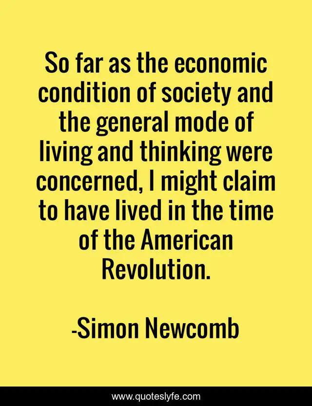 This page presents the quote "So far as the economic condition of society and the general mode of living and thinking were concerned, I might claim to have lived in the time of the American Revolution.". Author of this quote is Simon Newcomb. This quote is about thinking, american, time,.
