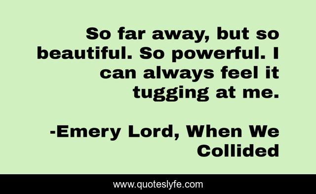 "Emery Lord, When We Collided Quotes." Quoteslyfe.com, 2025. Sat. 06 Dec. 2025. <https://www.quoteslyfe.com/quote/So-far-away-but-so-beautiful-So-234056>.