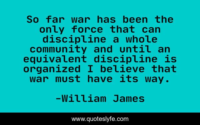 This page presents the quote "So far war has been the only force that can discipline a whole community and until an equivalent discipline is organized I believe that war must have its way.". Author of this quote is William James. .