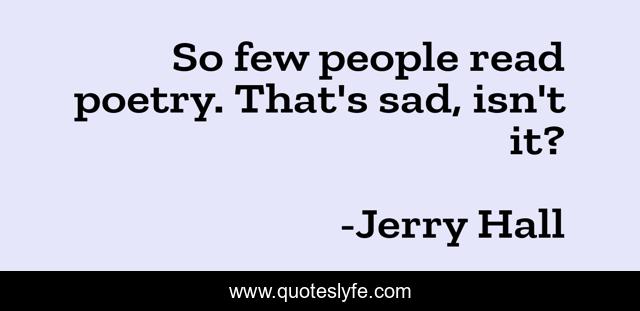 This page presents the quote "So few people read poetry. That's sad, isn't it?". Author of this quote is Jerry Hall. This quote is about few, poetry, people,.