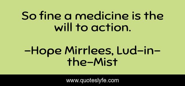 This page presents the quote "So fine a medicine is the will to action.". Author of this quote is Hope Mirrlees, Lud-in-the-Mist. This quote is about fantasy, lud-in-the-mist, selected, will-to-act, quotes, oliviu-craznic, hope-mirrlees,.