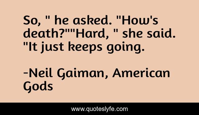"Neil Gaiman, American Gods Quotes." Quoteslyfe.com, 2025. Fri. 05 Dec. 2025. <https://www.quoteslyfe.com/quote/So-he-asked-How-s-death-Hard-21170>.