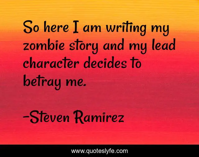 This page presents the quote "So here I am writing my zombie story and my lead character decides to betray me.". Author of this quote is Steven Ramirez. .