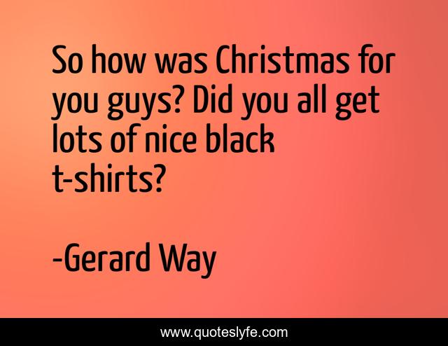 This page presents the quote "So how was Christmas for you guys? Did you all get lots of nice black t-shirts?". Author of this quote is Gerard Way. This quote is about emo, fashion,.