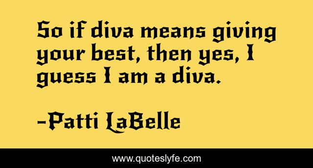 This page presents the quote "So if diva means giving your best, then yes, I guess I am a diva.". Author of this quote is Patti LaBelle. This quote is about giving, yes,.
