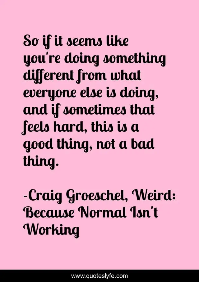 This page presents the quote "So if it seems like you're doing something different from what everyone else is doing, and if sometimes that feels hard, this is a good thing, not a bad thing.". Author of this quote is Craig Groeschel, Weird: Because Normal Isn't Working. This quote is about a, different, everyone, from, you-re, hard, bad, else, sometimes,.