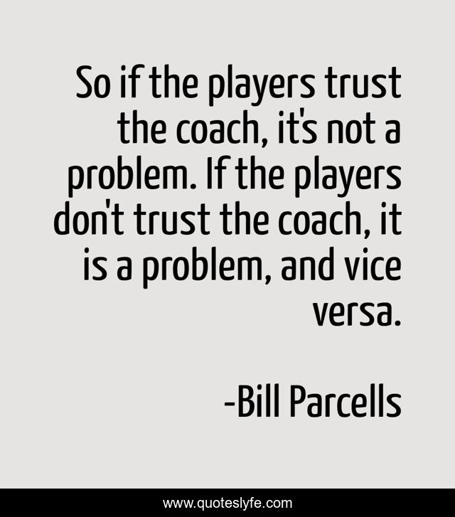 This page presents the quote "So if the players trust the coach, it's not a problem. If the players don't trust the coach, it is a problem, and vice versa.". Author of this quote is Bill Parcells. This quote is about problem, coach, vice,.