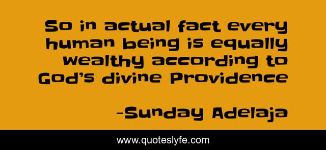 This page presents the quote "So in actual fact every human being is equally wealthy according to God’s divine Providence". Author of this quote is Sunday Adelaja. This quote is about actual, wealth, being, god, providence, human, fact,.