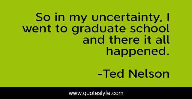 This page presents the quote "So in my uncertainty, I went to graduate school and there it all happened.". Author of this quote is Ted Nelson. This quote is about school, uncertainty,.
