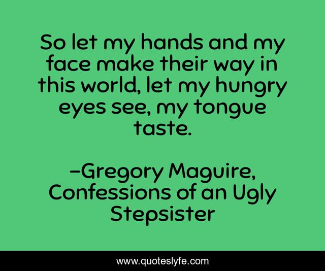 This page presents the quote "So let my hands and my face make their way in this world, let my hungry eyes see, my tongue taste.". Author of this quote is Gregory Maguire, Confessions of an Ugly Stepsister. .