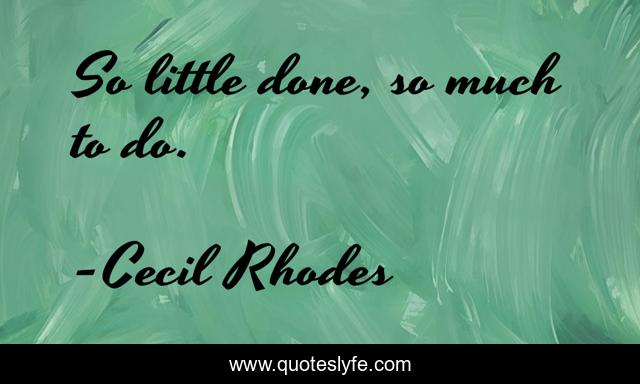 "Cecil Rhodes Quotes." Quoteslyfe.com, 2025. Mon. 08 Dec. 2025. <https://www.quoteslyfe.com/quote/So-little-done-so-much-to-do-281785>.