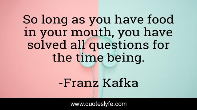 This page presents the quote "So long as you have food in your mouth, you have solved all questions for the time being.". Author of this quote is Franz Kafka. This quote is about questions, long, time,.