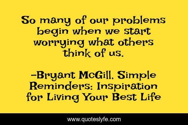 This page presents the quote "So many of our problems begin when we start worrying what others think of us.". Author of this quote is Bryant McGill, Simple Reminders: Inspiration for Living Your Best Life. This quote is about thinking, problems, worrying,.