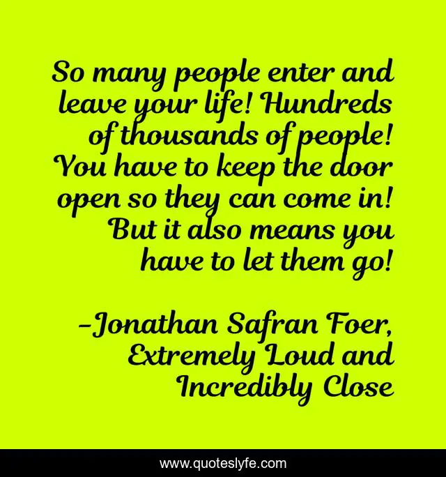 This page presents the quote "So many people enter and leave your life! Hundreds of thousands of people! You have to keep the door open so they can come in! But it also means you have to let them go!". Author of this quote is Jonathan Safran Foer, Extremely Loud and Incredibly Close. .