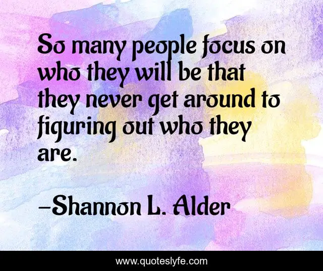 This page presents the quote "So many people focus on who they will be that they never get around to figuring out who they are.". Author of this quote is Shannon L. Alder. This quote is about who-you-are, dreamers, now, dreams, knowing-yourself,.