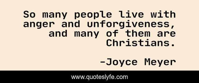 This page presents the quote "So many people live with anger and unforgiveness, and many of them are Christians.". Author of this quote is Joyce Meyer. This quote is about live, christians, people,.