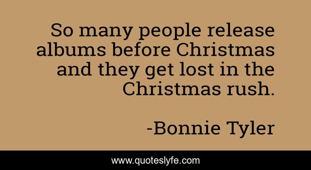 This page presents the quote "So many people release albums before Christmas and they get lost in the Christmas rush.". Author of this quote is Bonnie Tyler. This quote is about albums, lost, people,.