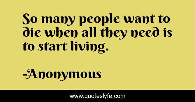 This page presents the quote "So many people want to die when all they need is to start living.". Author of this quote is Anonymous. This quote is about life, suicidal, people, die, live, multitudes, hope,.