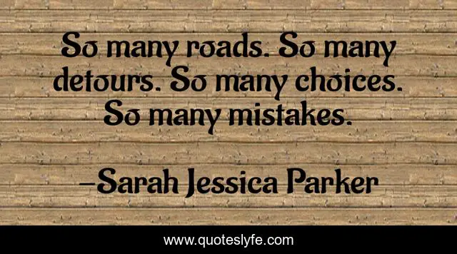 This page presents the quote "So many roads. So many detours. So many choices. So many mistakes.". Author of this quote is Sarah Jessica Parker. This quote is about free-will, mistakes, choices,.