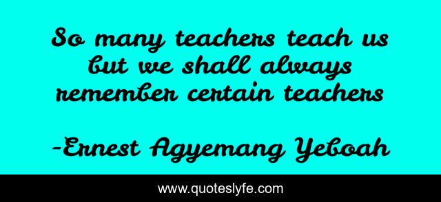 This page presents the quote "So many teachers teach us but we shall always remember certain teachers". Author of this quote is Ernest Agyemang Yeboah. This quote is about teaching-children, words-of-the-teacher, unforgettable-memory, leadership, teaching, unforgettable-teacher,.