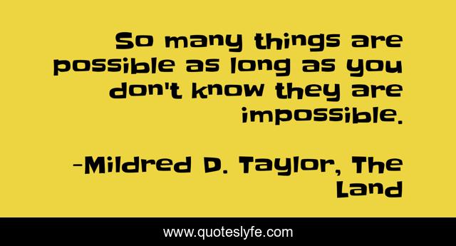 This page presents the quote "So many things are possible as long as you don't know they are impossible.". Author of this quote is Mildred D. Taylor, The Land. This quote is about enthusiasm, impossibility, inspirational, possibility,.