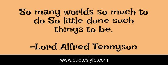 This page presents the quote "So many worlds so much to do So little done such things to be.". Author of this quote is Lord Alfred Tennyson. .