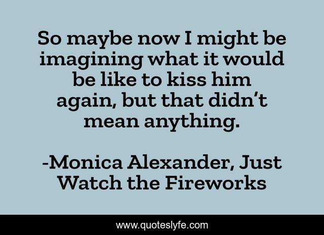This page presents the quote "So maybe now I might be imagining what it would be like to kiss him again, but that didn’t mean anything.". Author of this quote is Monica Alexander, Just Watch the Fireworks. .