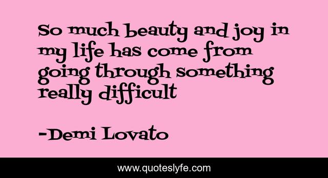 This page presents the quote "So much beauty and joy in my life has come from going through something really difficult". Author of this quote is Demi Lovato. This quote is about life, strong,.