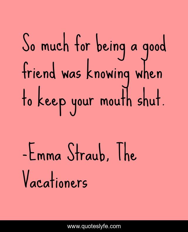 This page presents the quote "So much for being a good friend was knowing when to keep your mouth shut.". Author of this quote is Emma Straub, The Vacationers. .
