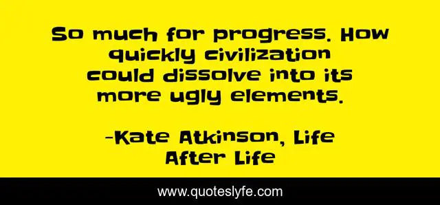 This page presents the quote "So much for progress. How quickly civilization could dissolve into its more ugly elements.". Author of this quote is Kate Atkinson, Life After Life. This quote is about elements, german, ugly, civilization, progress, germans,.
