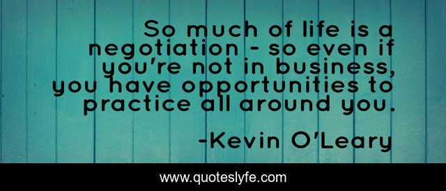 This page presents the quote "So much of life is a negotiation - so even if you're not in business, you have opportunities to practice all around you.". Author of this quote is Kevin O'Leary. This quote is about life, opportunities,.