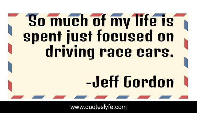 This page presents the quote "So much of my life is spent just focused on driving race cars.". Author of this quote is Jeff Gordon. This quote is about life, my life, driving,.