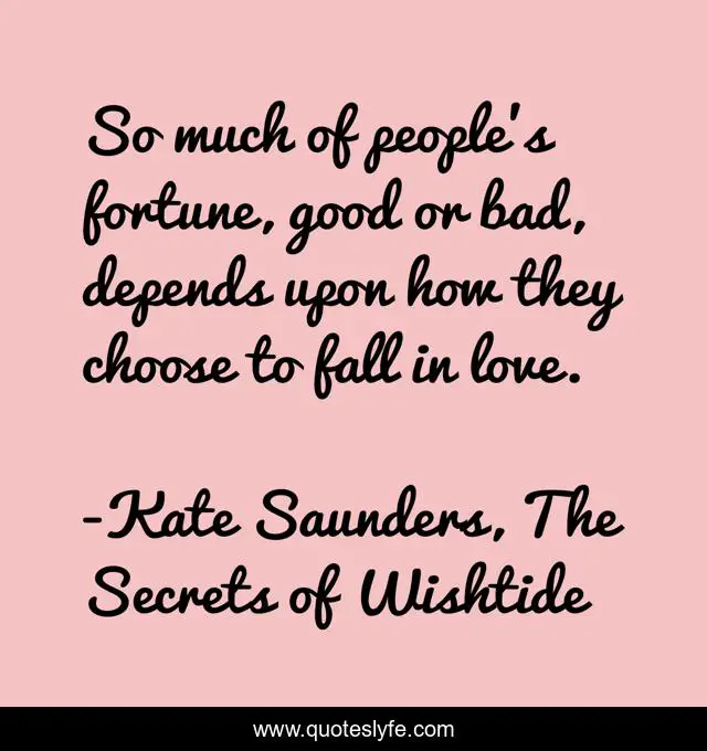 This page presents the quote "So much of people's fortune, good or bad, depends upon how they choose to fall in love.". Author of this quote is Kate Saunders, The Secrets of Wishtide. This quote is about falling-in-love, bad-fortune, good-fortune,.