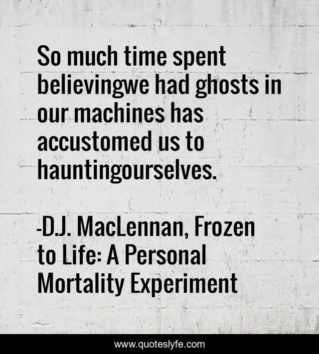 "D.J. MacLennan, Frozen to Life: A Personal Mortality Experiment Quotes." Quoteslyfe.com, 2025. Sat. 06 Dec. 2025. <https://www.quoteslyfe.com/quote/So-much-time-spent-believingwe-had-ghosts-87299>.