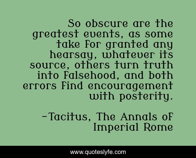 "Tacitus, The Annals of Imperial Rome Quotes." Quoteslyfe.com, 2025. Fri. 05 Dec. 2025. <https://www.quoteslyfe.com/quote/So-obscure-are-the-greatest-events-as-10050>.