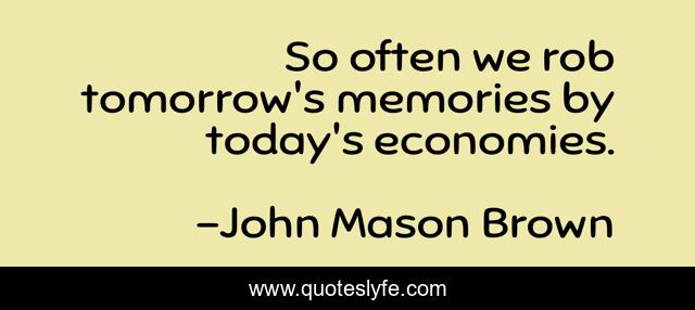 This page presents the quote "So often we rob tomorrow's memories by today's economies.". Author of this quote is John Mason Brown. .