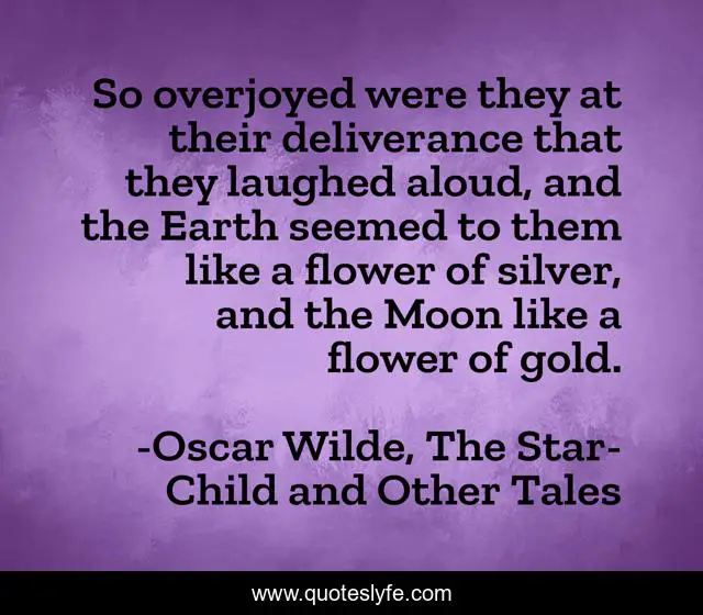 This page presents the quote "So overjoyed were they at their deliverance that they laughed aloud, and the Earth seemed to them like a flower of silver, and the Moon like a flower of gold.". Author of this quote is Oscar Wilde, The Star-Child and Other Tales. This quote is about joy, imagery, inspirational, enthusiasm,.