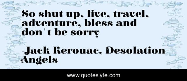"Jack Kerouac, Desolation Angels Quotes." Quoteslyfe.com, 2025. Fri. 05 Dec. 2025. <https://www.quoteslyfe.com/quote/So-shut-up-live-travel-adventure-bless-3373>.