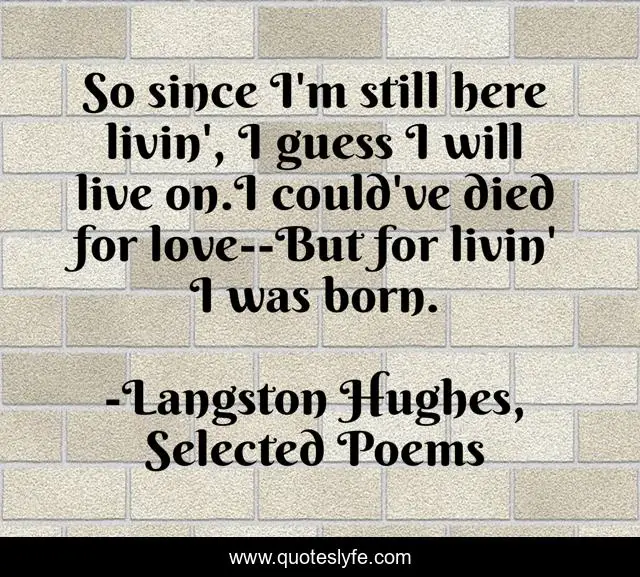 "Langston Hughes, Selected Poems Quotes." Quoteslyfe.com, 2025. Fri. 05 Dec. 2025. <https://www.quoteslyfe.com/quote/So-since-I-m-still-here-livin-3485>.