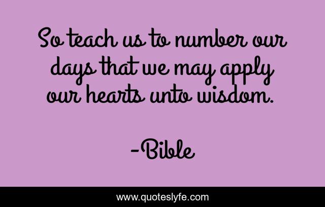 This page presents the quote "So teach us to number our days that we may apply our hearts unto wisdom.". Author of this quote is Bible. This quote is about day, one,.