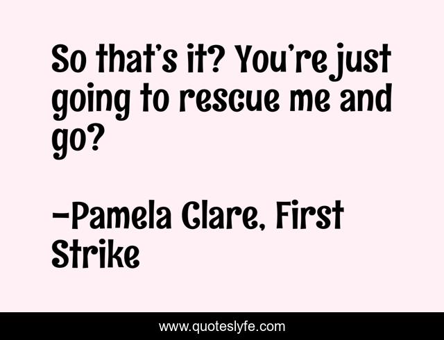 This page presents the quote "So that’s it? You’re just going to rescue me and go?". Author of this quote is Pamela Clare, First Strike. .