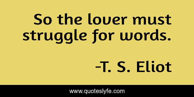 "T. S. Eliot Quotes." Quoteslyfe.com, 2025. Sun. 07 Dec. 2025. <https://www.quoteslyfe.com/quote/So-the-lover-must-struggle-for-words-324537>.