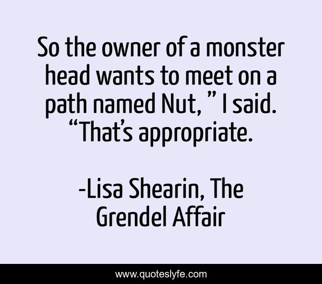 "Lisa Shearin, The Grendel Affair Quotes." Quoteslyfe.com, 2025. Sat. 06 Dec. 2025. <https://www.quoteslyfe.com/quote/So-the-owner-of-a-monster-head-184057>.